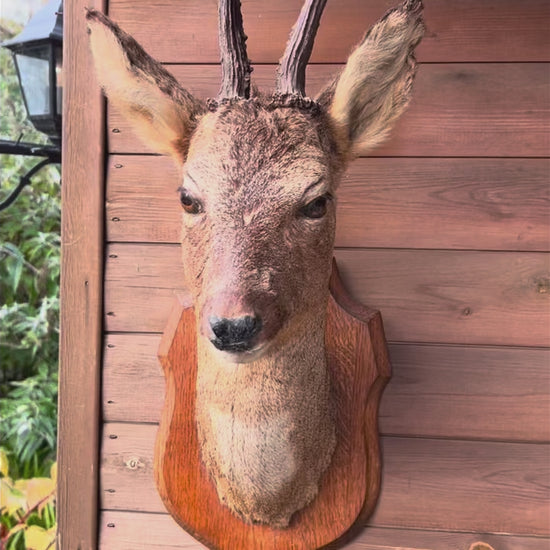 This vintage French Roe Deer Head Mount with Antlers is a genuine taxidermy specimen sourced from a traditional brocante market in northern France. Unlike modern replicas, this is an authentic vintage piece, professionally mounted on a wooden plaque. This has a fair amount of wear to the ears as shown - this is reflected in the price. This will be suitable for display as is - it is complete but please bear in mind condition.